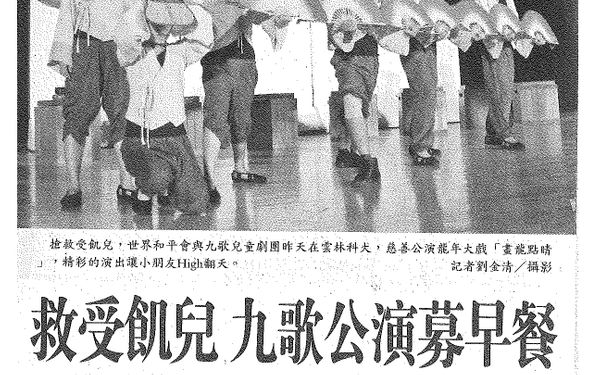 【聯合報】救受飢兒 九歌公演募早餐