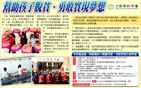 【聯合晚報】幫助孩子脫貧‧勇敢實現夢想