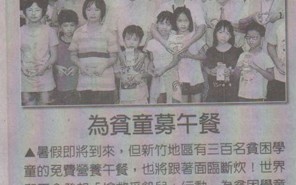 【新竹勞工之聲】社團法人世界和平會 發起「搶救受飢兒暑期餐費」 亟需各界捐輸響應