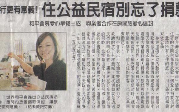 【中華日報】旅行更有意義!住公益民宿別忘了捐款