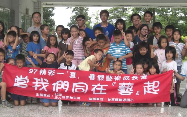 【中央社報導】大學生台東暑假學習營 滿載而歸 大學生台東暑假學習營 滿載而歸 中央社/97.09.05/盧太城/台東縣 「世界和平會」舉辦的「台東暑假學習營」,由大學生志工帶領台東單親家庭和外籍配偶孩童,透過運動、藝術等方式,讓台東孩童有個快樂的回憶。隨著學校開學,大學生也陸續返回學校,個個滿載而歸。 世界和平會所舉辦的台東暑假學習營,今年邁入第三年,共有四十位來自單親、外籍配偶和貧弱家庭的孩童參加,由大學生志工,想出各種生動有趣的啟發方式,引導台東小朋友透過運動、藝術等方式,在活動中設計各式的闖關遊戲,活動日前結束。 開南大學空運系學生李竺靜說,這次活動中她安排「當我們同在藝起」營隊,最有趣的活動莫過於讓小朋友們自己制訂營規。其中「小敏」提出的營規是「別人講話時要安靜地聽」;問她為什麼要提這個規定時,她說她每次講話時,別人都在講話,都沒有人要聽,所以她希望她講話別人會聽,別人講話她也願意安靜地聽。 實踐大學社工系林妍廷負責帶動「價值觀拍賣」的活動。她讓每個孩子有一百萬的籌碼,可以用這籌碼金額購買自己需要的能力,例如:聰明、勇氣、財富、信心……等。「小傑」花了一百萬買了「勇氣」,於是林妍廷請「小傑」勇敢上台分享,為什麼花一百萬買勇氣。小傑說,「因為我很害羞,所以我想要擁有勇氣!」大家給予熱烈的掌聲! 另外,為了讓小朋友發揮天生的藝術天分,淡江大學經濟系的張昀馥、屏東科技大學社工系的楊世英與台南大學特教系柯巧文共同設計了「畫出心中新世界」的畫畫創意接力遊戲,讓小朋友們各自畫出一項心愛的東西,透過每個小朋友所畫的物品,運用接力的方式編制成一個有趣的故事,藉由說故事的引導,學習如何分享自己心中的喜悅,也學習團隊的合作。 三天的營隊過程中,這群七年級大學生志工,睡在學校的幼稚園裡足足四天,每天晚上討論至深夜十一時,身驅疲憊,卻擁抱著滿滿的喜悅,只想著如何讓明天活動給孩子更多的歡樂與學習,透過設計獨一無二的藝術課程,讓孩子在營隊活動中,培養對於團隊的合作與創意發想,也希望帶給孩子更多溫暖,進而學習感恩回饋,自己成為幫助社會的人。 開學後,這群大學生志工陸續返回學校,大家滿載而歸,相約明年再到台東來帶領這群小朋友,讓他們的寒暑假能過得不同。