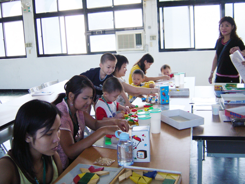 在世界和平會基隆支會的邀請下, 頭一回接觸、參與外籍配偶親子的活動帶領,其孩子的年齡又在0-3歲間,雖然本身已有十多年的幼教教學及多年國小代課經驗,但在課程安排及備課上仍不敢馬虎而更加戰戰兢兢。課堂上從孩子先前的坐立難安、爭吵中至慢慢的專注繪本聆聽故事,從團體的分享中學會人際關係及自我概念人格發展的重要,從遊戲中落實生活規範的養成。媽媽們看見孩子的改變,明瞭閱讀帶來的影響與好處,和孩子一起學習成長是一件多麼開心的事呀!