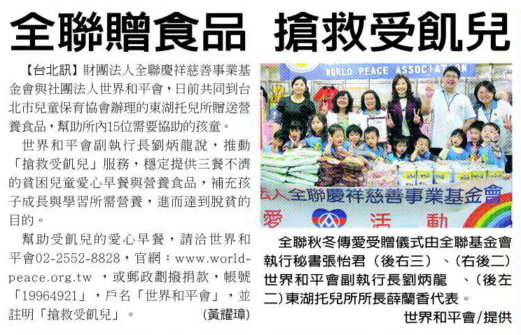 【聯晚】全聯贈食品 搶救受飢兒