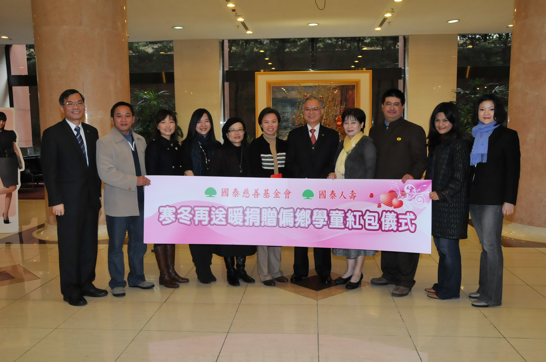 國泰慈善基金會延續「寒冬送暖」前進偏鄉舉辦耶誕聯歡活動,今年持續發起「寒冬再送暖愛心捐款活動」,國泰集團同仁的愛心不畏寒冬,員工樂捐金額創歷年新高!國泰慈善基金會將善款將扮成近5000個新年紅包,除由「霖園志工團」出發偏鄉,親手將紅包送給弱勢小朋友之外,也將善款移撥給專業社福機構,透過他們的專業與效率,將紅包轉發給更多需要的家庭及小朋友。