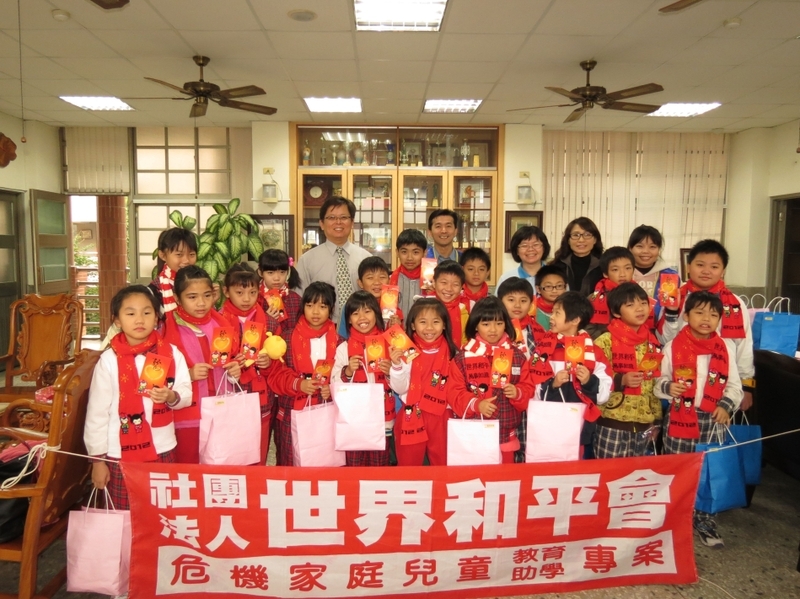 希望幫助100個嘉義縣市貧弱危機家庭兒童少年過一個溫暖的新年。世界和平會嘉義分會於歲末時節,籌募「袋我過好年,紅包滿滿101」活動,於過年前,元月13日在嘉義市博愛國小發放過年助學紅包與新年禮物,22位學童,每位收到600元紅包、圍巾及襪子。