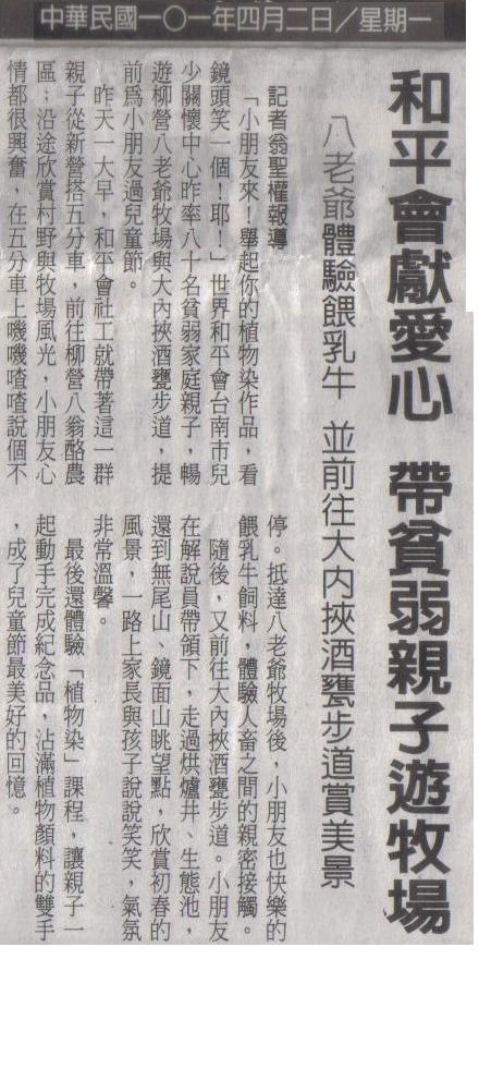【中華日報】和平會獻愛心 帶貧弱親子遊牧場