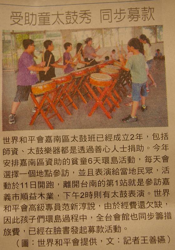【自由時報】受助童太鼓秀 同步募款