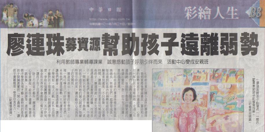 【中華日報】廖連珠募資源幫助孩子遠離弱勢