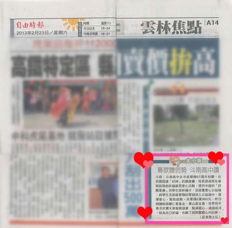 【自由時報】募款贈弱勢 斗南高中讚