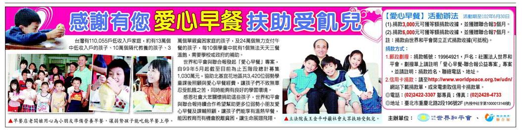 【聯合報】感謝有您 愛心早餐扶助受飢兒