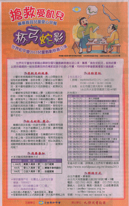 【聯合晚報】世界和平會2013兒童戲劇慈善公演