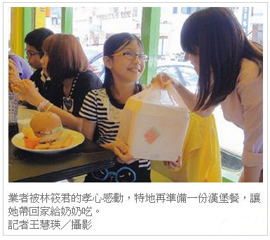 【聯合報】餐廳招待弱勢學子吃漢堡 女童想留給阿嬤