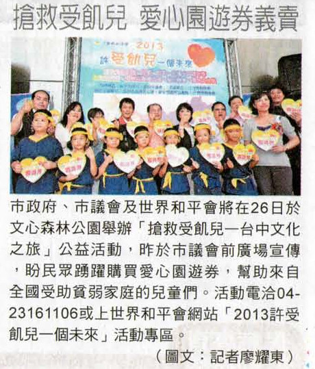 【自由時報】搶救受飢兒 愛心園遊券義賣