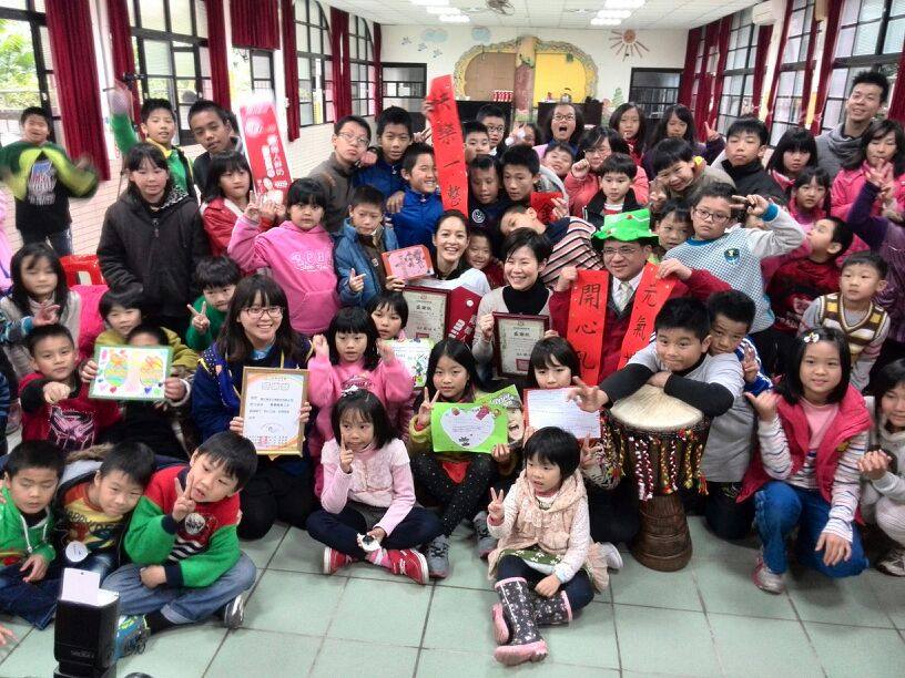 新北市新店龜山國小慶祝新年,以不同國家與族群的語言祝賀,並邀「瘋台灣」節目主持人Janet(謝怡芬)一起關懷學童。