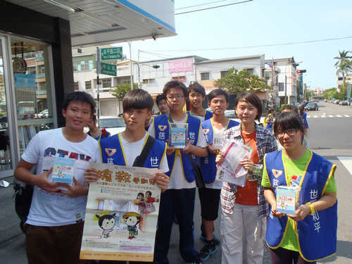有鑑於此,世界和平會與斗南高中特別規劃「搶救受飢兒,329百位青年動起來」街頭勸募活動,近150位學生志工在青年節走入人群、關懷社會,於出發前一起精神喊話「搶救受飢兒,有你救行」!斗南鎮街頭各大路線可看到穿著和平會背心、手拿愛心零錢箱的身影,超商外、火車站前、挨家挨戶邀請民眾捐愛心零錢或發票,獲得許多人當場給予支持鼓勵。多一張發票,就多一分希望,多一份善心,小朋友就多一份生機,讓志工們也產生幫助別人的成就感。