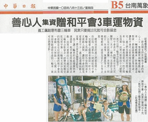 【中華日報】善心人集資贈和平會3車運物資