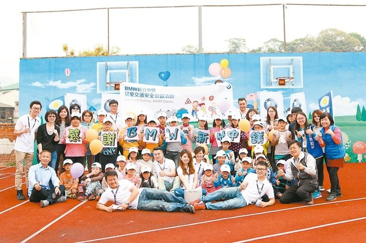 BMW中鎂汽車到大湖鄉華興國小送兒童節禮物,還辦理交通安全體驗營。 圖/世界和平會提供