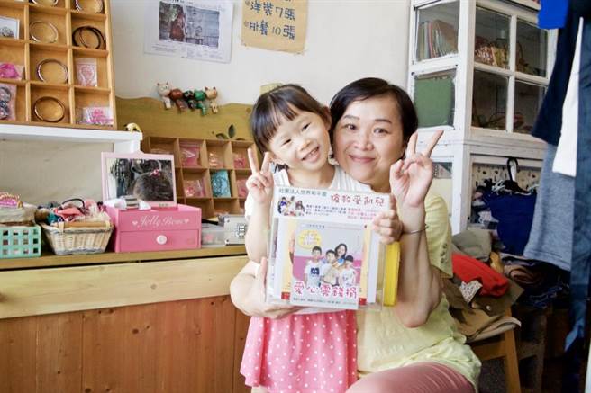 雨朵工作室布包設計師陳幸敏(右)舉辦「二手衣發票交換市集」,義賣所得及發票將全數捐給世界和平會,幫助受飢兒。(陳俞霈攝)