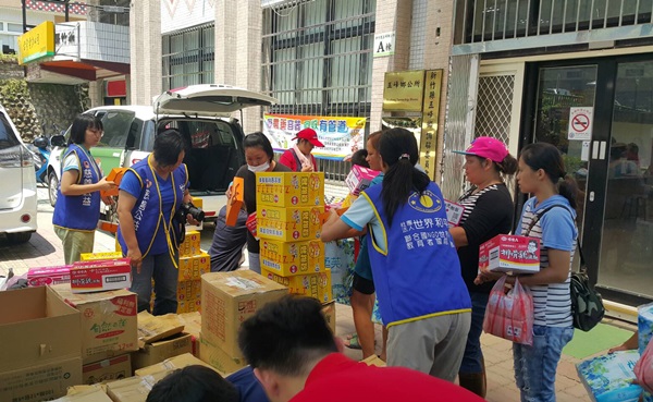 圖由春福建設「HI-INN」提供/一箱箱的愛心「滿載」,春福建設「HI-INN」員工協同世界和平會志工,為五峰國小弱勢家庭,整理捐助物資,並即時發放。
