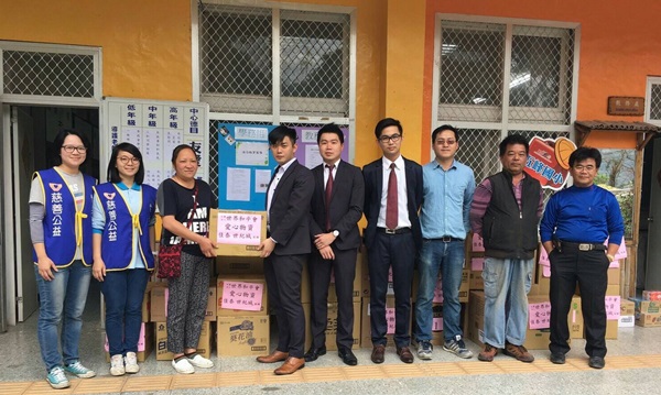 世界和平會表示,「佳泰世紀城」銷售團隊共捐贈了32份物資,除了五峰國小,同時也幫助新豐鄉福龍國小、福興國小、埔和國小與關西鎮東光國小的學童們,共計3天時間將物資全數發放完畢。