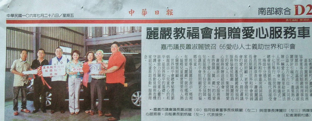 【中華日報】麗嚴教福會捐贈愛心服務車