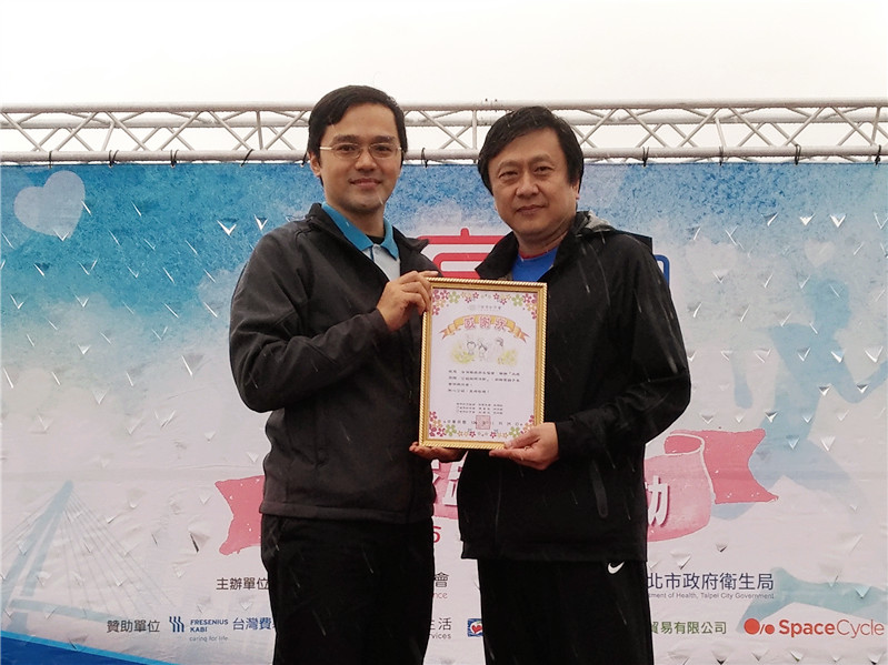 台灣費森尤斯卡比公司總經理邱建智表示,非常榮幸有機會參與活動,癌症病友在治療過程中,必須自己承受病痛、生活不便,希望能藉由路跑活動,鼓勵癌友走出戶外,了解抗癌過程中仍有很多人陪伴、關心,期望癌友能夠早日康復。
