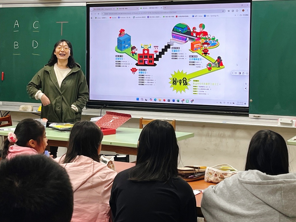 課堂上孩子們能細緻指出校園中的潛在危險:「樓梯扶手溜下來會跌倒」、「運動場可能被球打到」、「自然教室要注意不明液體⋯⋯」