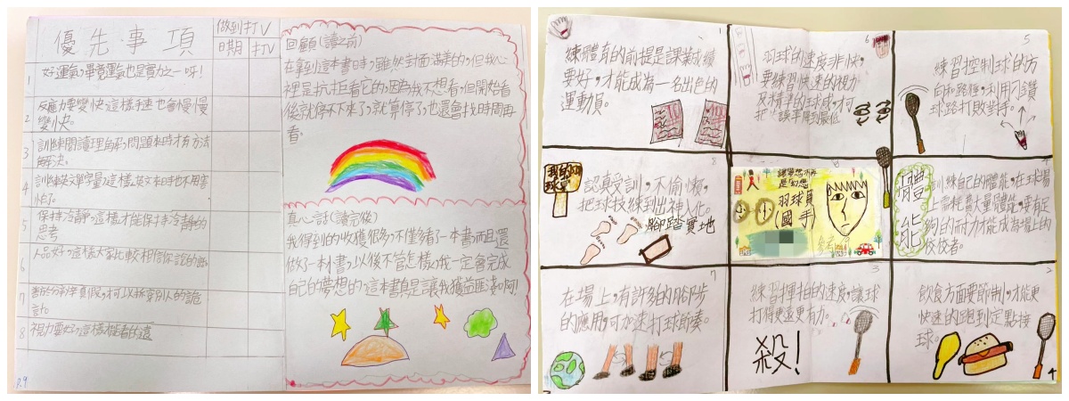 在閱讀活動中,團隊成員也會發想搭配適合的寫作任務,例如請孩子改寫繪本《愛心樹》重新詮釋故事,讓男孩與樹互相珍惜。或是透過《我的弱雞爸爸》繪本,請孩子描寫家人最擅長的事,回憶與家人互動中感人的時刻。