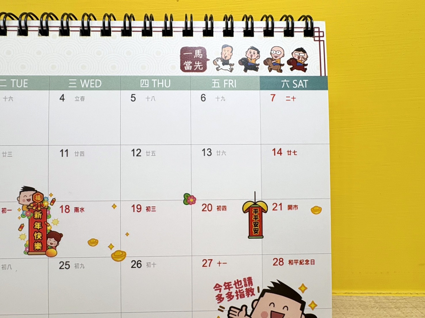 感謝愛心廠商「卡之屋創意印刷」,精心選用225P「超雪銅」材質,搭配獨家引進的日本王子精湛造紙—為目前在外銷上愛用的進口紙張,不僅桌曆書寫更方便、印製的色彩也更飽滿,紙本身也不易產生炫光讓使用者不舒服。採用 HUV 加上水晶網點(據說眼睛看就是細緻到不行),包含獨家出版技術以及印刷的黃金組合,超高線數 1440 線,讓整體色彩和細節都清晰透亮,真的是太用心啦!