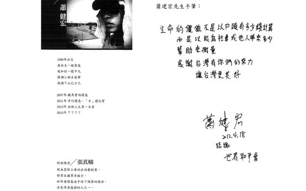 93天的旅途,1300公里的足跡,喚起你遺忘的夢想、流失的熱情。感謝蕭健宏先生,本書銷售所得扣除出書與經銷成本後捐助「世界和平會」社會服務工作
