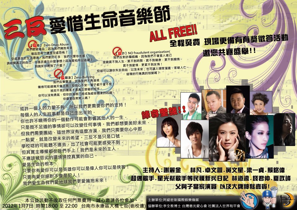 本公益活動不收取任何門票費用,誠心邀請您的參加