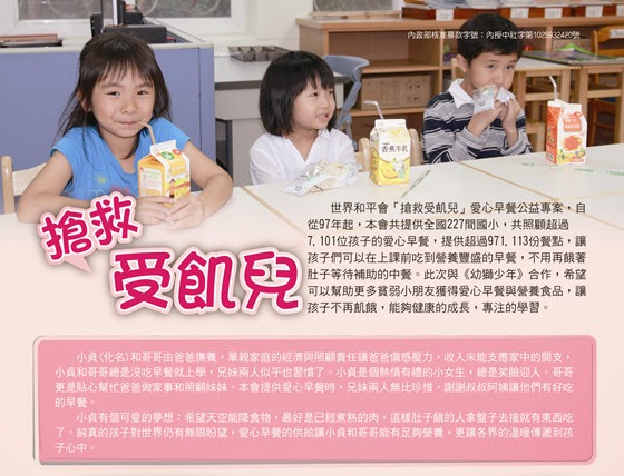 最新消息 news歷史活動 活動訊息 歷史活動 媒體報導 回列表 2014-03-29 世界和平會與幼獅文藝等優質雜誌公益合作方案 北宋黃庭堅有云:「一日不讀書,言語乏味;三日不讀書,面目可憎」 不管世代如何的改變,自己實力的充實與內涵的培養想必是一直需要的! 非常幸運的,世界和平會邀請到「幼獅少年」、「幼獅文藝」、「聯合報」、「熟年誌」與「看雜誌」,願意與世界和平會一同關懷社會上需要幫助的貧童。 您除了捐款幫助貧童的愛心早餐,自己還可以得到一份知性的報章雜誌,實在非常划算! >>歡迎點選喜歡的公益方案直接進入與了解內容: 「幼獅少年」 「幼獅文藝」 「聯合報」 「熟年誌」 「看雜誌」