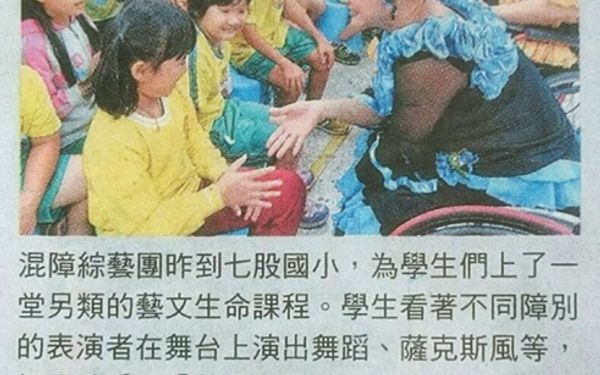 混障綜藝團公演 南市七股學感恩 台南市七股國小日前透過世界和平會,邀請混障綜藝團到校進行生命教育演出,表演者包含不同殘障類別人士,精湛的演出讓學生十分感動。校長陳智楊期勉學生應懷著感恩的心,將來能為他人付出,實踐自己的生命價值。 混障綜藝團首度到七股國小演出舞蹈,吹奏薩克斯風與演唱等。團員與學生分享生命歷程故事,以及「尊重生命,勇於突破」信念。學生高莉姍表示:「綜藝團的阿姨及叔叔都好勇敢,忍受著身體的痛苦努力學習,即使手腳有殘缺或眼睛看不見,仍有精彩表演,鼓勵我們要努力學習。」學生陳佳臻說,團員發揮才藝,為社會付出到各地表演,他們的成功背後一定很辛苦,很慶幸自己擁有健康的身體,要更努力學習,將來盡一己之力。(李榮茂/台南報導) 原始剪報