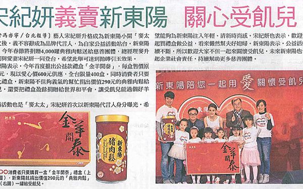 【自由時報】宋紀妍義賣新東陽 關心受飢兒