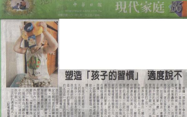 【中華日報】塑造「孩子的習慣」,適度說不