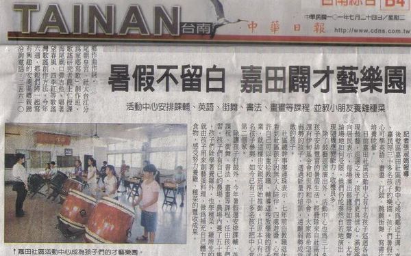【中華日報】暑假不空過 嘉田闢才藝樂園