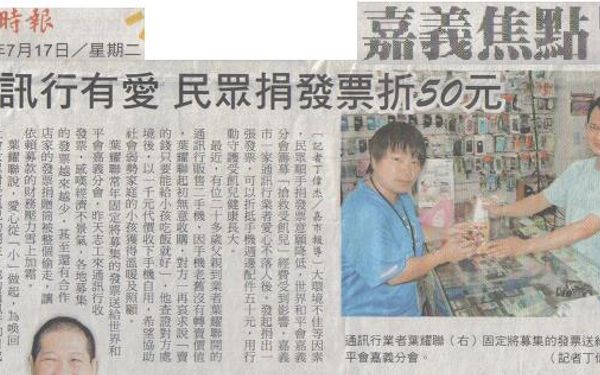 【自由時報】通訊行有愛,民眾捐發票折50元