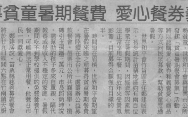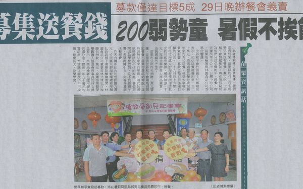 【中國時報】籌募貧童暑期餐費 愛心餐券義賣