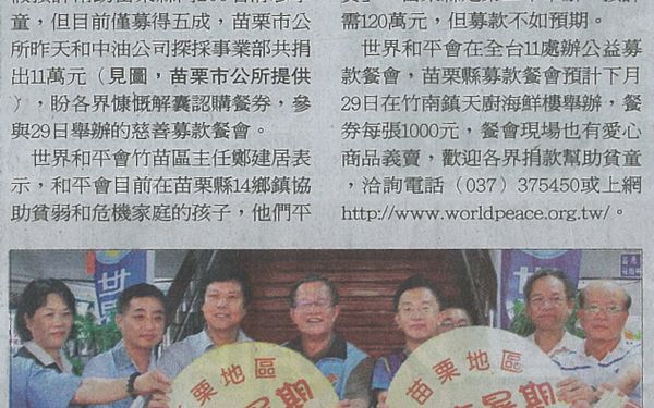 【青年日報】世界和平會 搶救受飢兒暑期餐費 勸募助弱