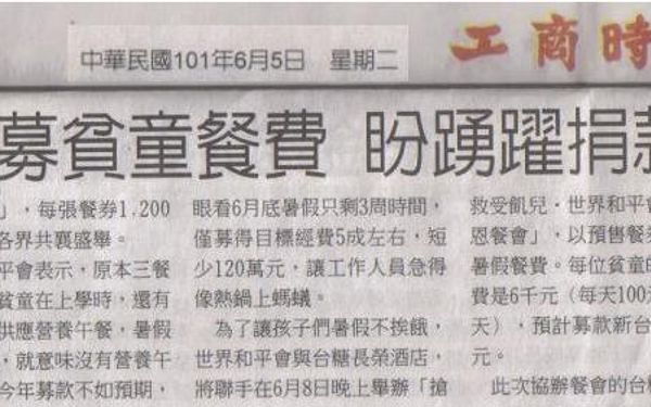【工商時報】世界和平會募貧童餐費 盼踴躍捐款