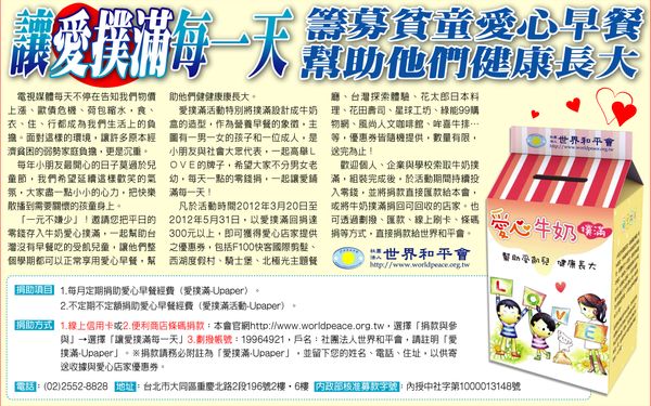 【聯合晚報】讓愛撲滿每一天