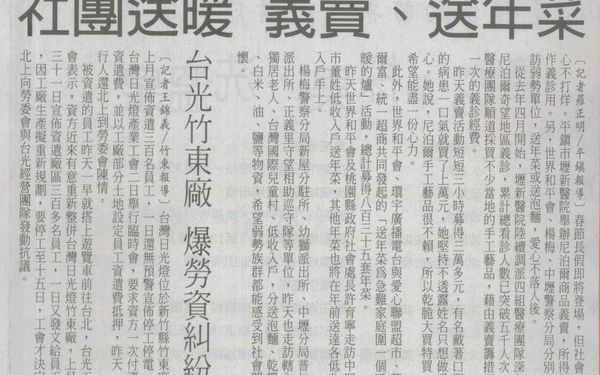 【自由時報報導】社團送暖 義賣、送年菜