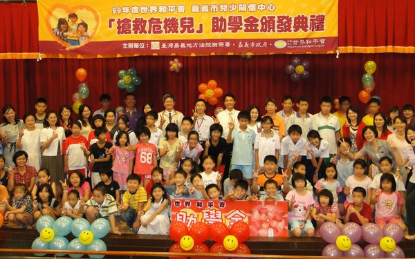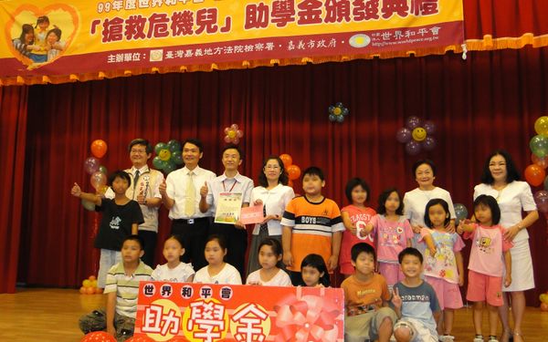 【人間社報導】搶救危機兒 上學GO助學金搶救危機兒 上學GO助學金人間社/賴台生/嘉義 世界和平會嘉義分會「搶救危機兒‧上學GO」助學金頒發典禮,於15日舉行,今年度共籌募到助學金60萬元,幫助100個嘉義縣市貧弱危機家庭兒童少年順利升學。世界和平會總會主任秘書鄭建居表示,貧弱危機家庭常因父母或隔代教養的阿公阿嬤突然失業或疾病,無法工作或被資遣,造成家庭經濟陷入困境,這樣的家庭年年增加,但因經濟不景氣,今年就有20餘個長期助養人停止捐助,造成助學金不足的窘境。幸好嘉義地檢署運用緩起訴處分金18萬元及嘉義市嘉華獅子會長黃秀子等人慷慨解囊,讓下學期的助學金順利發放。助學金頒發典禮由有58位兒童、少年,在師長的陪同下代表出席領取,其他尚有42位同學,因家住偏遠鄉村或交通不便無法參加,將由和平會嘉義分會一一到校頒發。受助學童四年級的小文和妹妹小平是單親隔代家庭的孩子,從一年級開始參加和平會舉辦的課輔班、成長團體課程、寒暑假營隊等活動,已經有 3年的時間,小文阿公很感謝和平會的協助,原本擔心自己只有國小學歷,小文媽媽又是輕度弱智,無法教導孩子功課,最近卻通過英文初級檢測100分,阿公感到非常開心。世界和平會呼籲,嘉義地區很多偏遠鄉村的危機家庭兒童亟需幫助,希望有更多人伸出援手長期助養,每名孩童每月1千元,歡迎家庭、班級或團體合力助養,詳情請洽愛心專線:05-2255164。