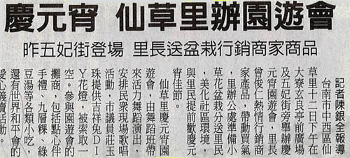 【中華日報報導】慶元宵 仙草里辦園遊會