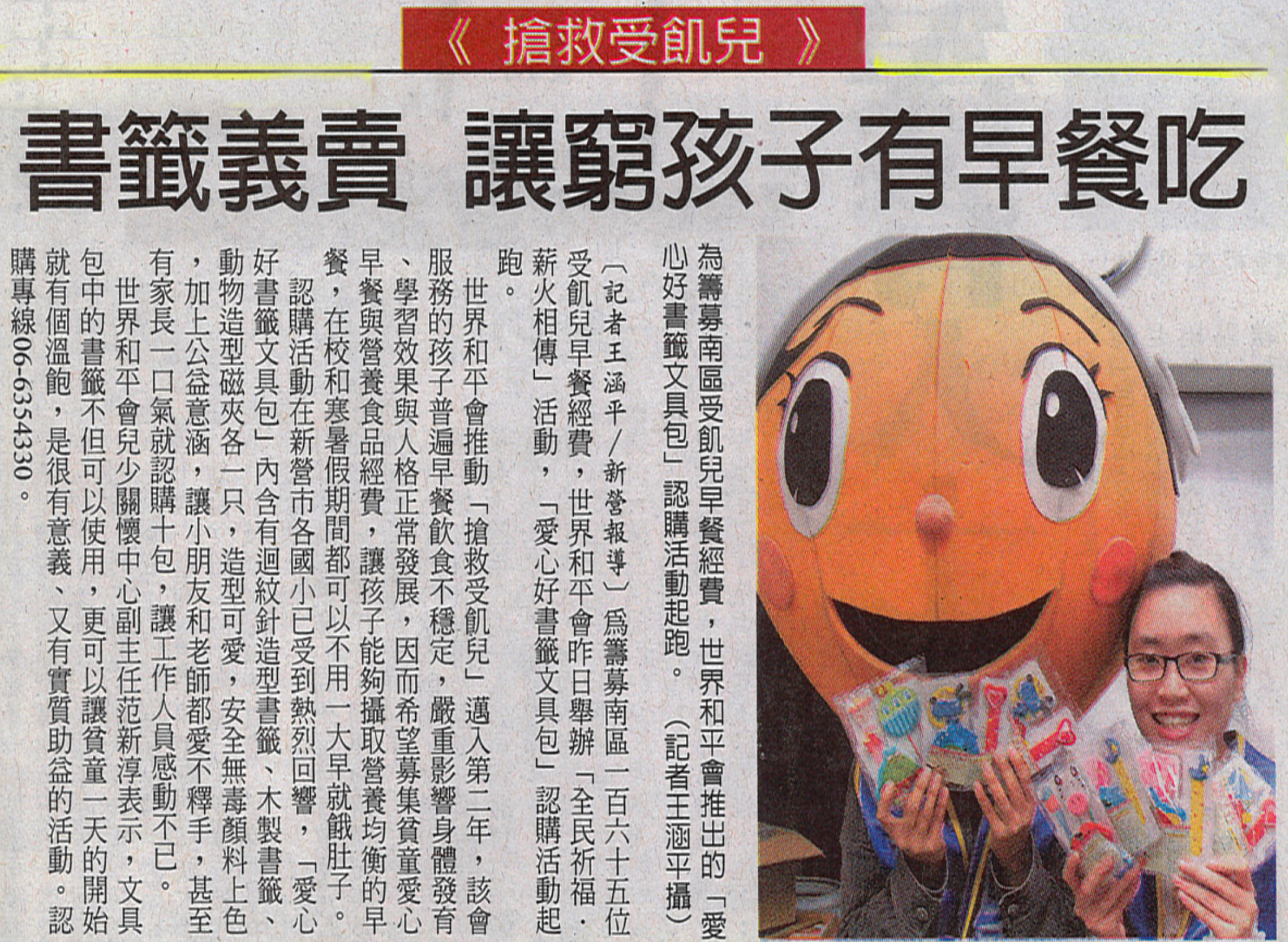 【自由時報報導】《搶救受飢兒》書籤義賣 讓窮孩子有早餐吃