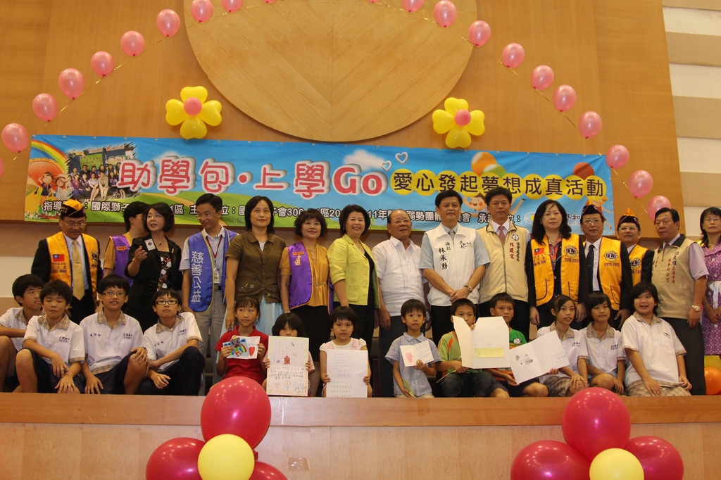 由國際獅子會300-D1區關懷弱勢團體委員會共同發起「助學包‧上學GO」愛心發起夢想成真活動,籌募11萬元助學金,幫助世界和平會嘉義地區120位受助童得到自己心目中的助學禮物,活動今(13)日下午在嘉義市議會舉行,場面感人溫馨。