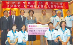 臺灣銀行配合63週年行慶,舉辦多起「臺銀傳愛」公益活動,並於昨(20)日舉辦「關懷兒童-員工捐贈童書及文具用品儀式」。