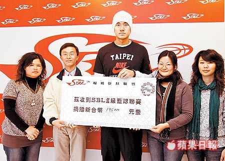 標榜「真星相挺」SBL為公益而戰的明星賽雖已在上周落幕,但是SBL球星的真心才開始燃燒,昨天透過明星賽MVP(Most Valuable Player,最有價值球員)台啤何守正(圖中),將明星賽出場費全數捐給公益團體,以實際行動回饋社會。