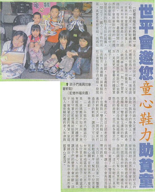 【台灣時報報導】世平會邀您童心鞋力助貧童