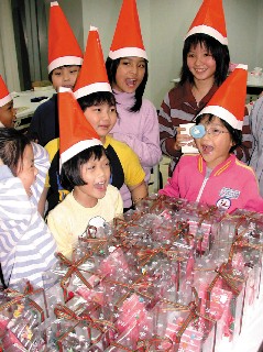 耶誕節將屆,世界和平會義工、桃園縣永平工商餐飲科學生游惠如,自製60座「巧克力屋」送給弱勢家庭的學童,看到小朋友驚喜的模樣,她不好意思地說「我從小都沒有收過耶誕禮物,別人收到我送的禮物,一定很高興!」